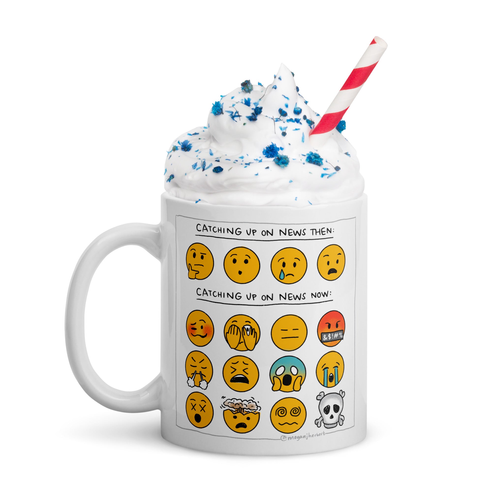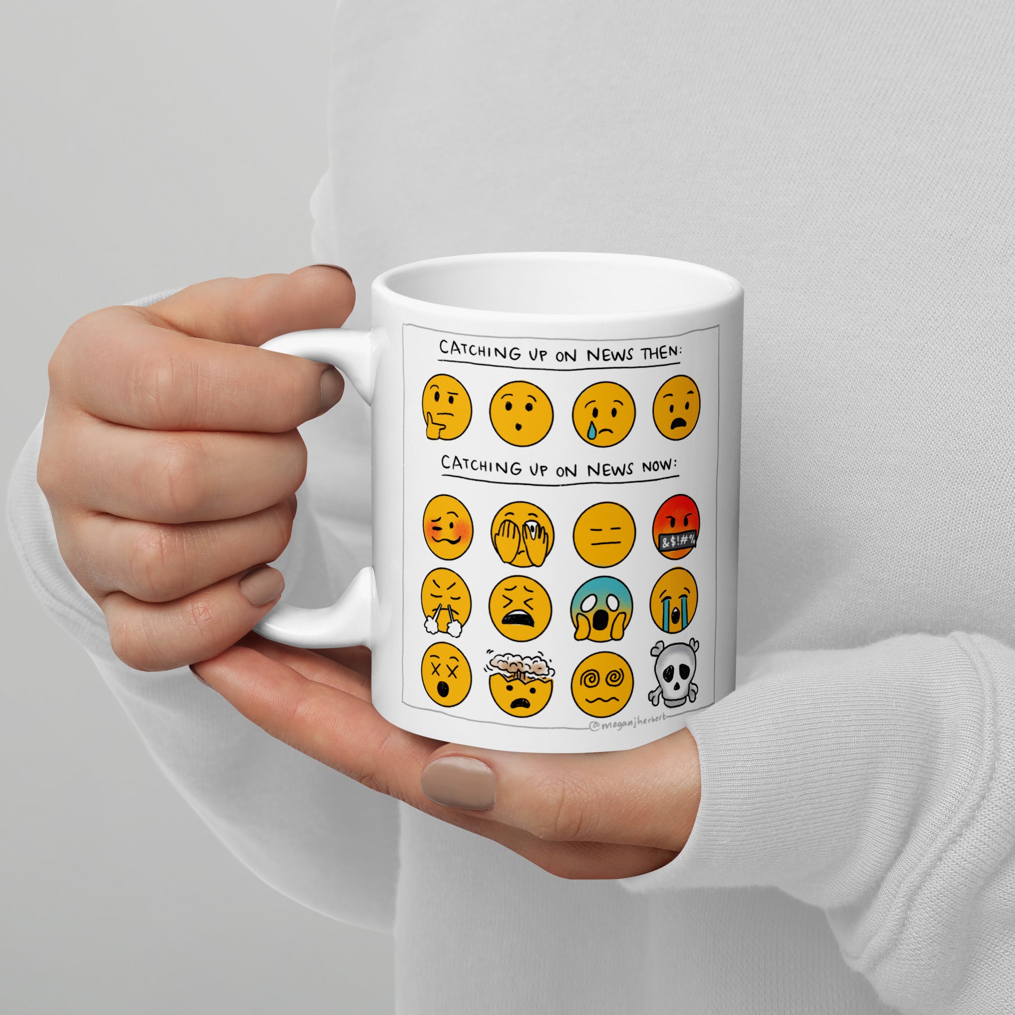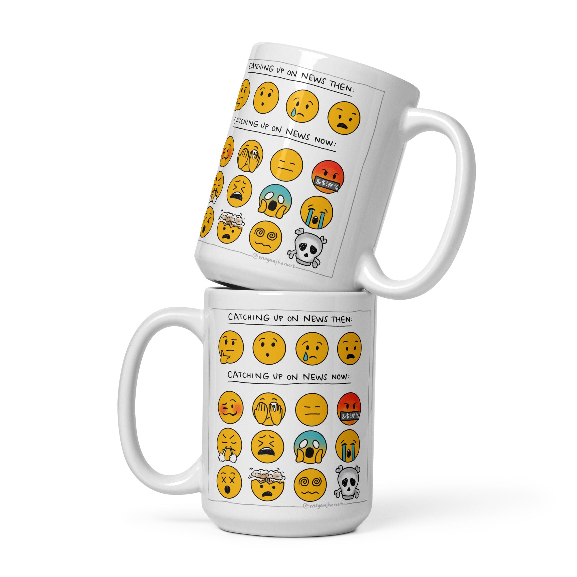 The News Cycle, amirite?! Maybe a few emoji (emojis?) will make things feel slightly less apocalyptic. Worth a try. These ceramic mugs not only have a beautiful and darkly hilarious design on them, but are also sturdy and glossy with a vivid print that'll withstand the microwave and dishwasher if not the imminent apocalypse. Drink up!